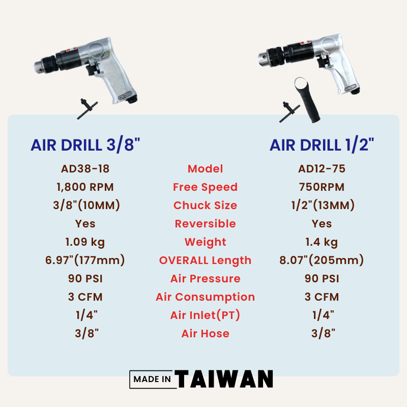 -- สว่านลมนิวเมติกแบบมืออาชีพย้อนกลับได้ TAIWAN--3/8