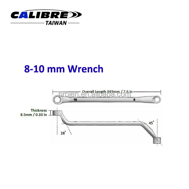 TAIWAN CALIBRE 3pc 6pt Offset Double Box End Brake Bleeder Wrench Set CR-V Material Nickel Plated HRC 42-45 Heat Treated