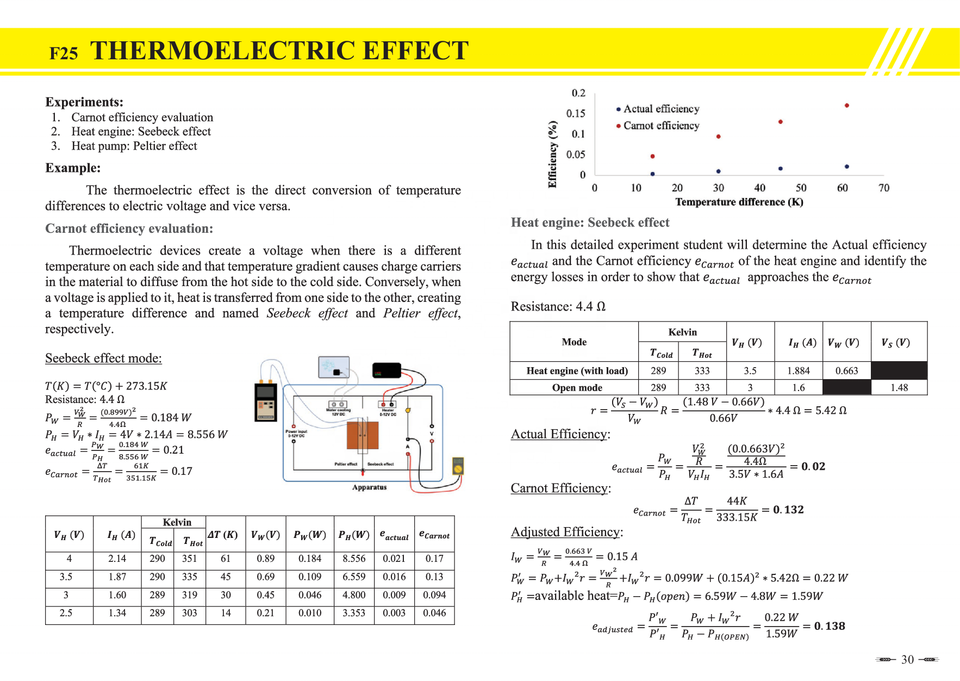 (ไต้หวัน) เทอร์โมอิเล็กทริกผลสำหรับฟิสิกส์ Carnot ประสิทธิภาพความร้อนเครื่องยนต์ปั๊มความร้อนพลังงาน Seebeck Peltier ผลการทดสอบ