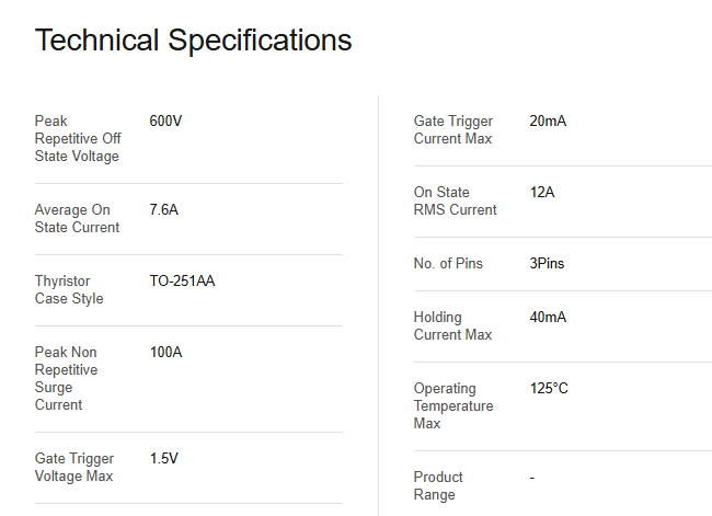 ไทริสเตอร์ S6012VTP Taiyan 1.5V 3-PIN ถึง-251 40mA 600V 125C ของใหม่ดั้งเดิม