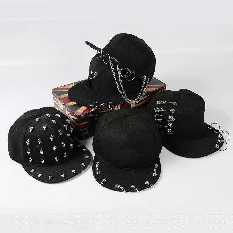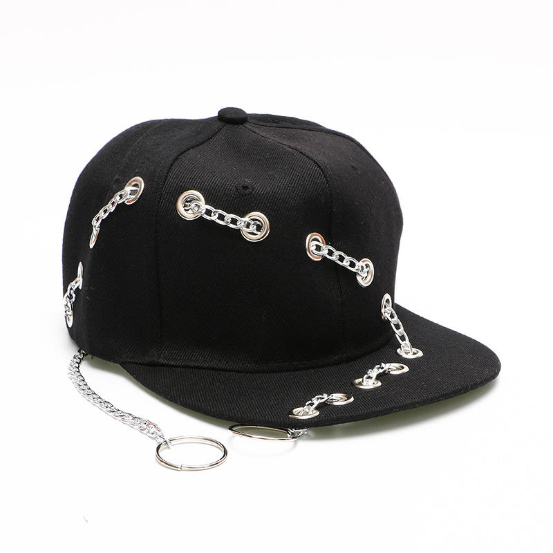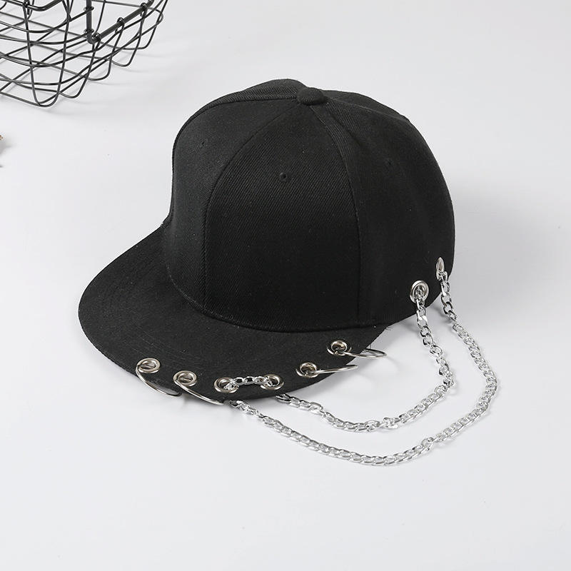 หมวกแก๊ปแฟชั่นฮิปฮอปสไตล์ร็อคคุณภาพสูง TANAZAINRA ตกแต่งด้วยโซ่เจาะแบบสร้างสรรค์ ทรงแบน สำหรับผู้ใหญ่ ยูนิเซ็กส์ 100%