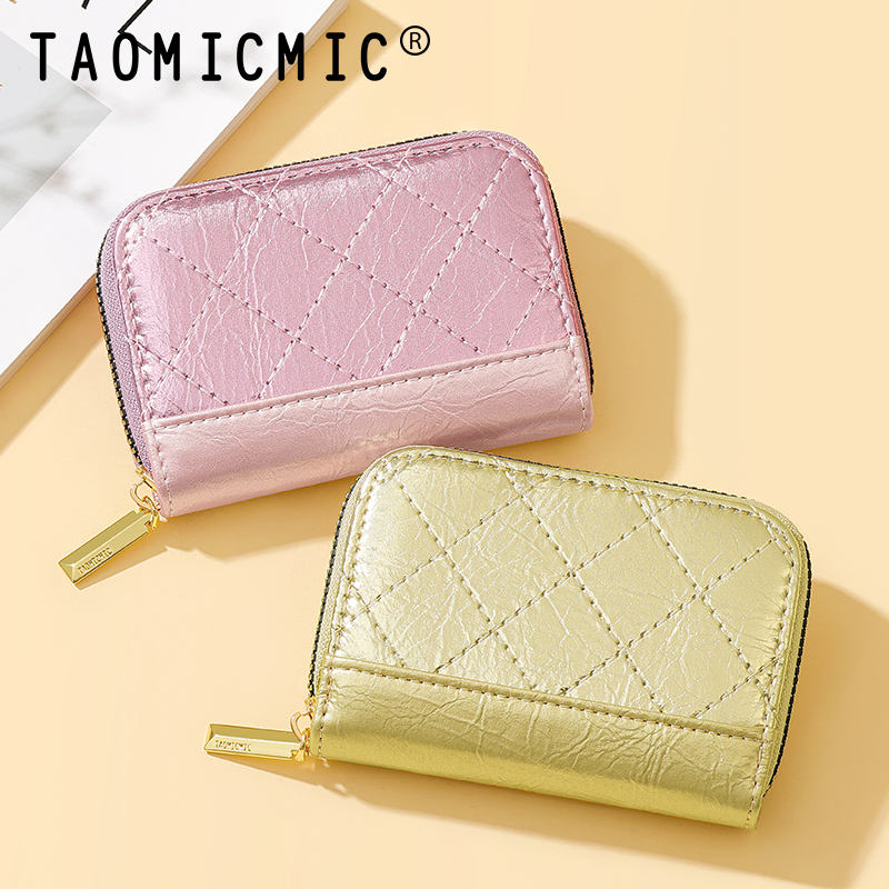 Taomicmic กระเป๋าใส่บัตรหนัง PU ครึ่งดวงมีซิปกระเป๋าใส่บัตรผู้หญิงอเนกประสงค์สำหรับเด็กผู้หญิง