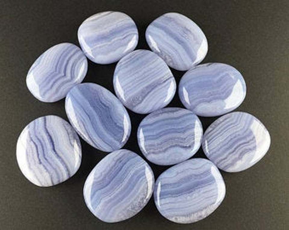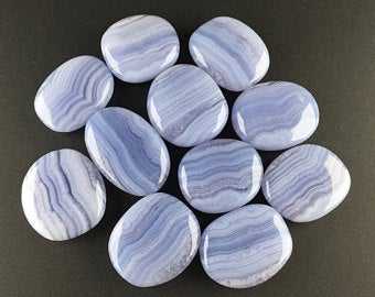 พลอยแท้ TASBIYA GEMS บลูเลซอาเกตทรงรีขนาด 8 มม. น้ำหนัก 500 กรัม รับรองโดยผู้ตรวจสอบอิสระ สำหรับทำเครื่องประดับ
