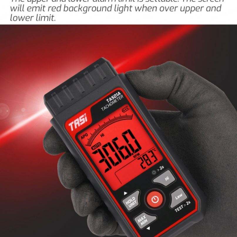 เครื่องวัดความเร็วรอบแบบดิจิตอล TASI TA501A แบบเลเซอร์ แบบพกพา ไม่ต้องสัมผัส วัดค่า RPM