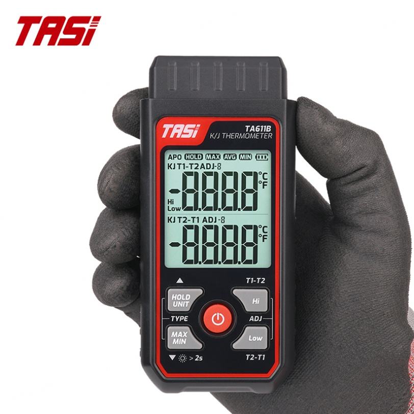 เทอร์โมมิเตอร์ดิจิตอลแบบเทอร์โมคัปเปิล TASI TA611A K/J วัสดุ ABS พร้อมพอร์ตเชื่อมต่อ USB ช่วงการวัด -200~1372 องศาเซลเซียส ใช้แบตเตอรี่ AAA รับผลิตแบบ OEM/ODM