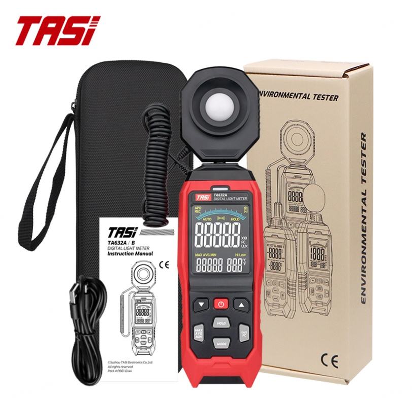 TASI TA632A เครื่องวัดแสงดิจิตอลความแม่นยำสูงแบบอัตโนมัติ 130 ซม. โพรบวัดแสงอุตสาหกรรม 0.1-200,000Lux 1 ปี IP65