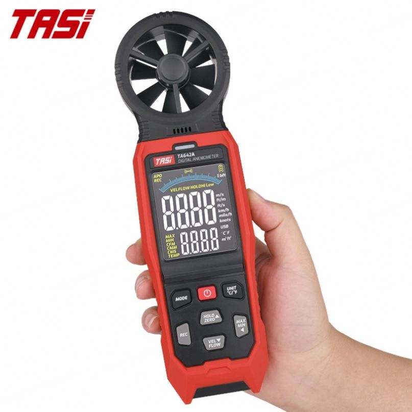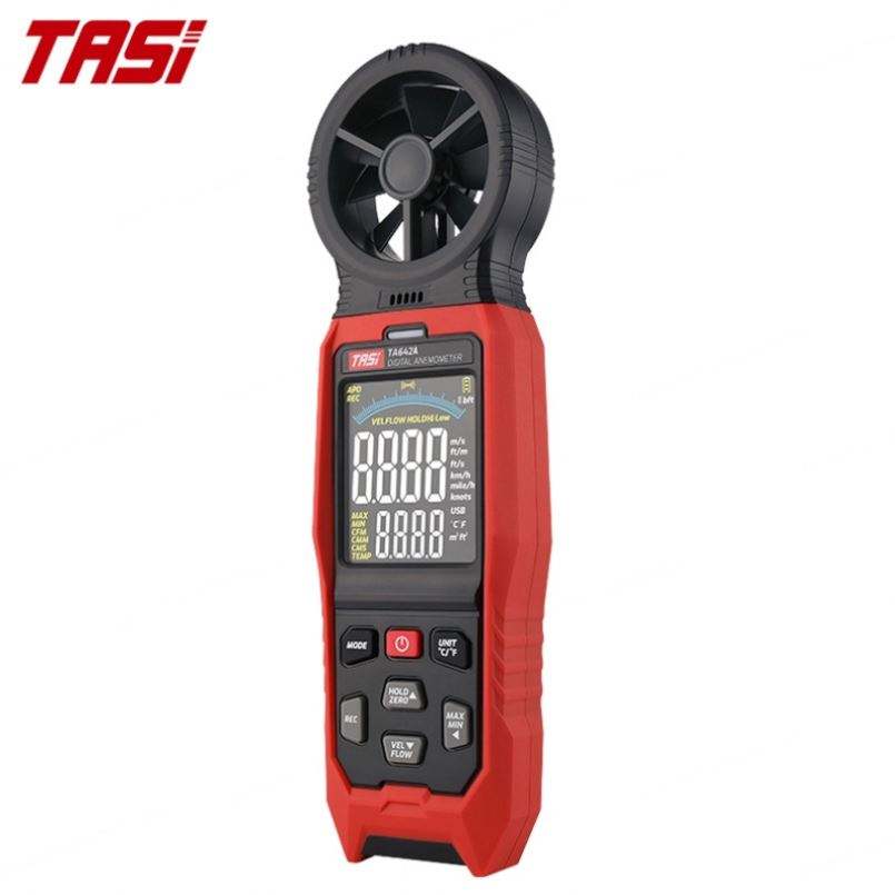เครื่องมือวัดความเร็ว TASI TA642A เครื่องวัดอุณหภูมิอากาศ ความเร็วการไหลของอากาศ และเครื่องวัดความเร็วลม เครื่องวัดความเร็วลมแบบแอนิมอมิเตอร์