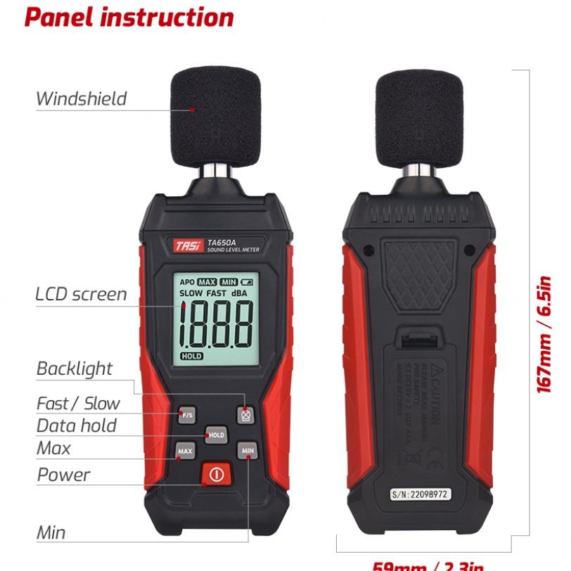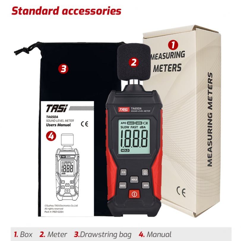เครื่องวัดเสียง TASI TA650A รุ่นพื้นฐาน ช่วงการวัด 30~130 เดซิเบล พร้อมวัดอุณหภูมิโดยรอบ วัสดุ ABS