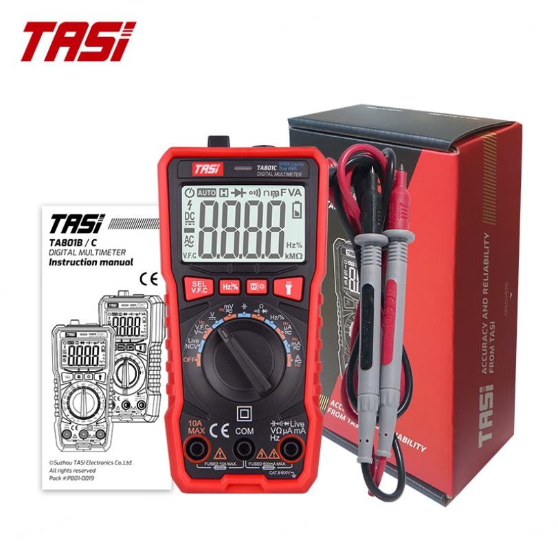 มัลติมิเตอร์ TASI TA801D รุ่นบางพิเศษ พร้อมหน้าจอ LCD แบบมีไฟพื้นหลัง เครื่องทดสอบแรงดัน/กระแส/ความต้านทานแบบอัตโนมัติ เหมาะสำหรับการทดสอบนอกสถานที่