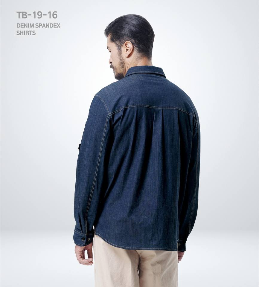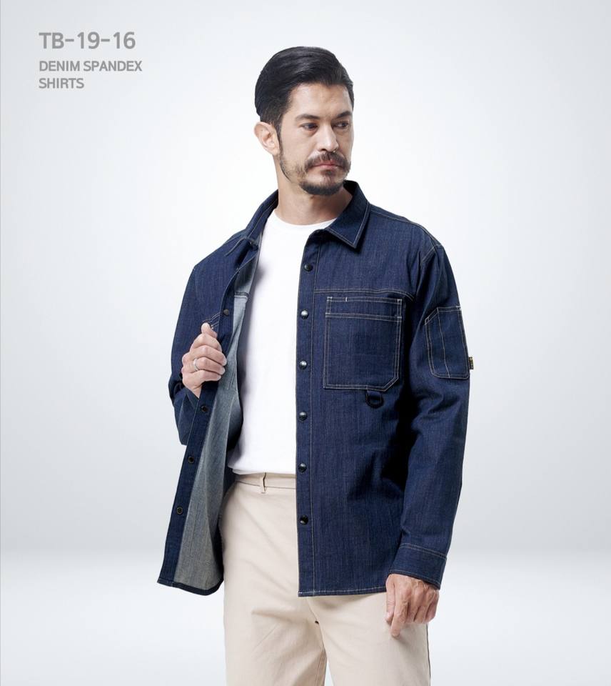 เสื้อยีนส์ t.buc เสื้อยีนส์แบรนด์เกาหลี TB-19-16, ผ้าฝ้ายสแปนเด็กซ์ผสมหลายกระเป๋ากระดุมสแปนเด็กซ์
