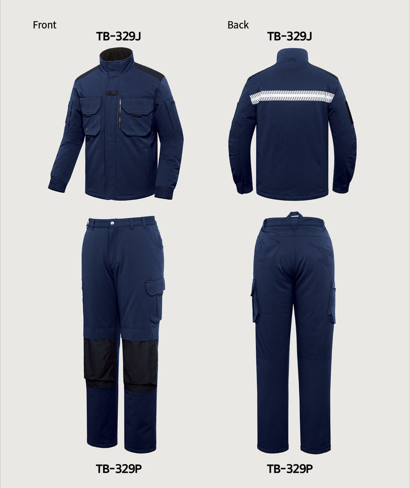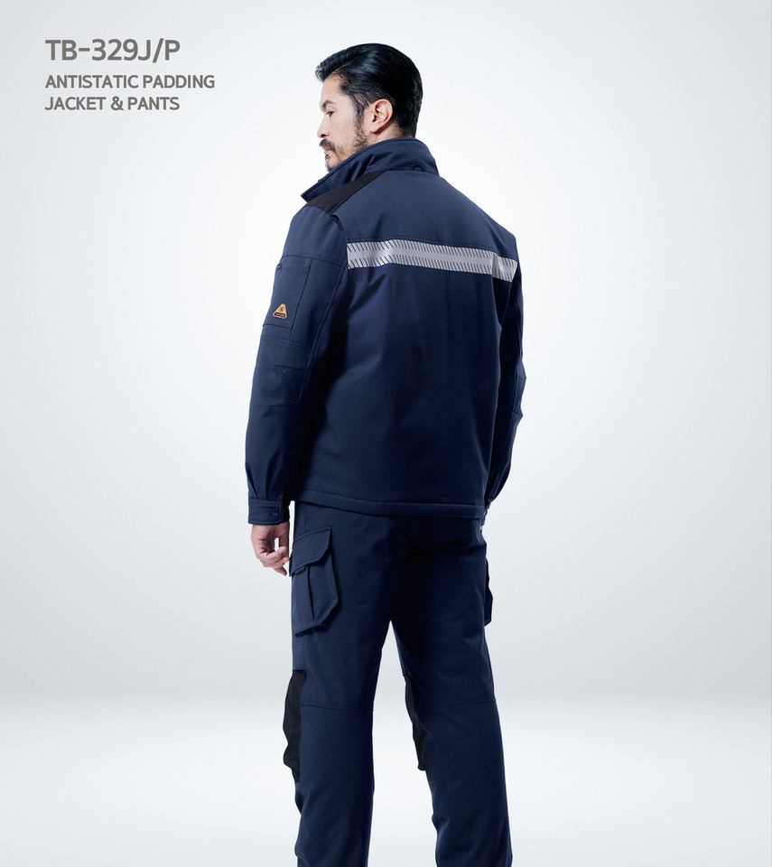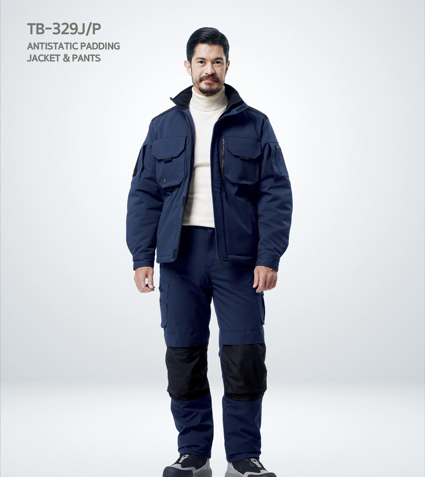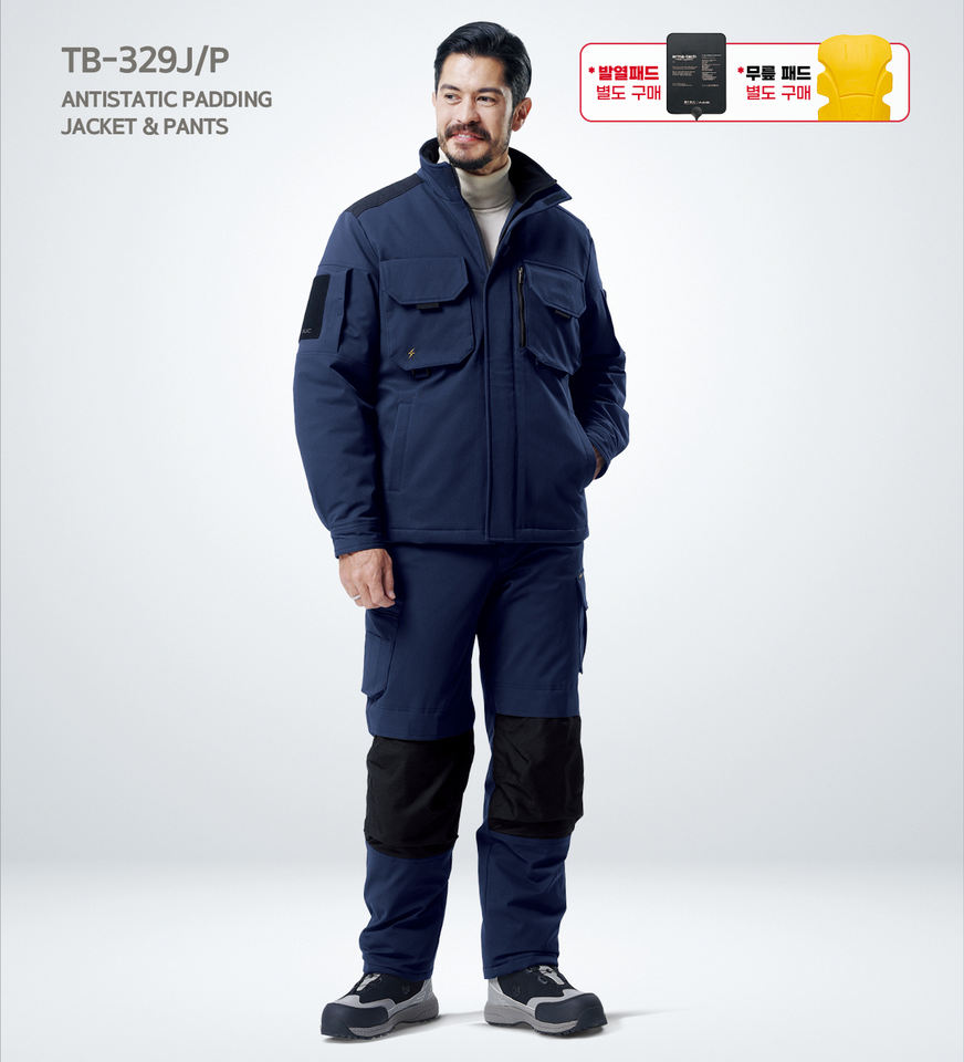 ชุดทำงานอัจฉริยะโพลีเอสเตอร์ยี่ห้อเกาหลี [T.BUC] รุ่น TB-329J/P แบบ OEM/ODM สำหรับทุกเพศ พร้อมระบบทำความร้อนแบบถอดได้ Arma-Tech และแถบสะท้อนแสงเพื่อความปลอดภัย
