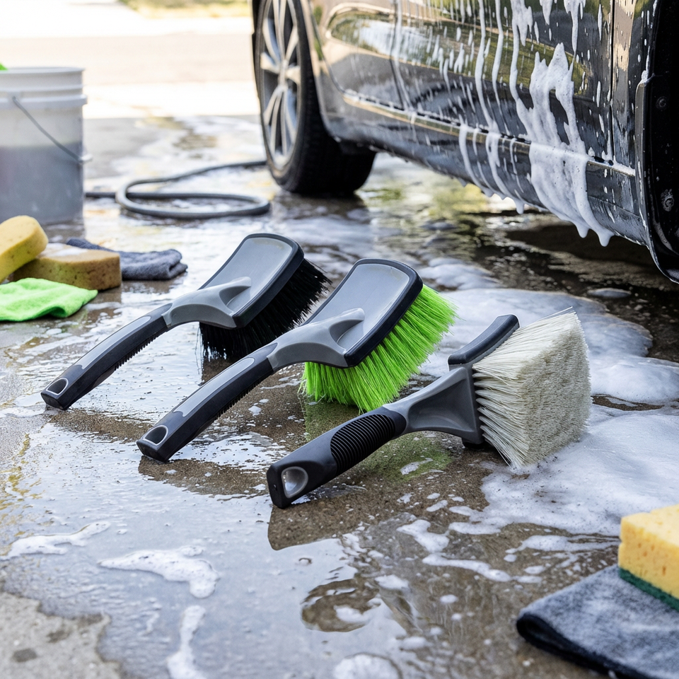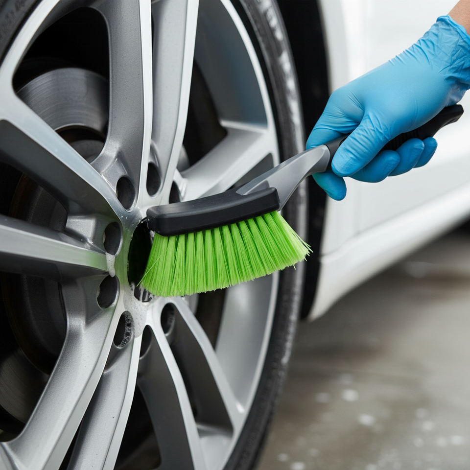 แปรงทำความสะอาดล้อและยางรถยนต์อเนกประสงค์ TB-PRO001, ดีไซน์สีทอง, โครงสร้างชิ้นเดียว, ขนแปรงทำจากวัสดุ PE/PP/PBT