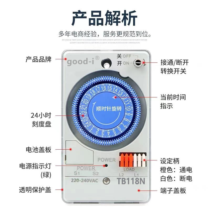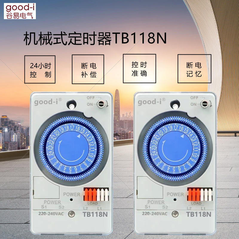 TB118N 24-Hour Mechanical Timer Switch Streetlight Billboard Time Controller Max Voltages 110v/240v/24v Max Currents 20a/16a/30a