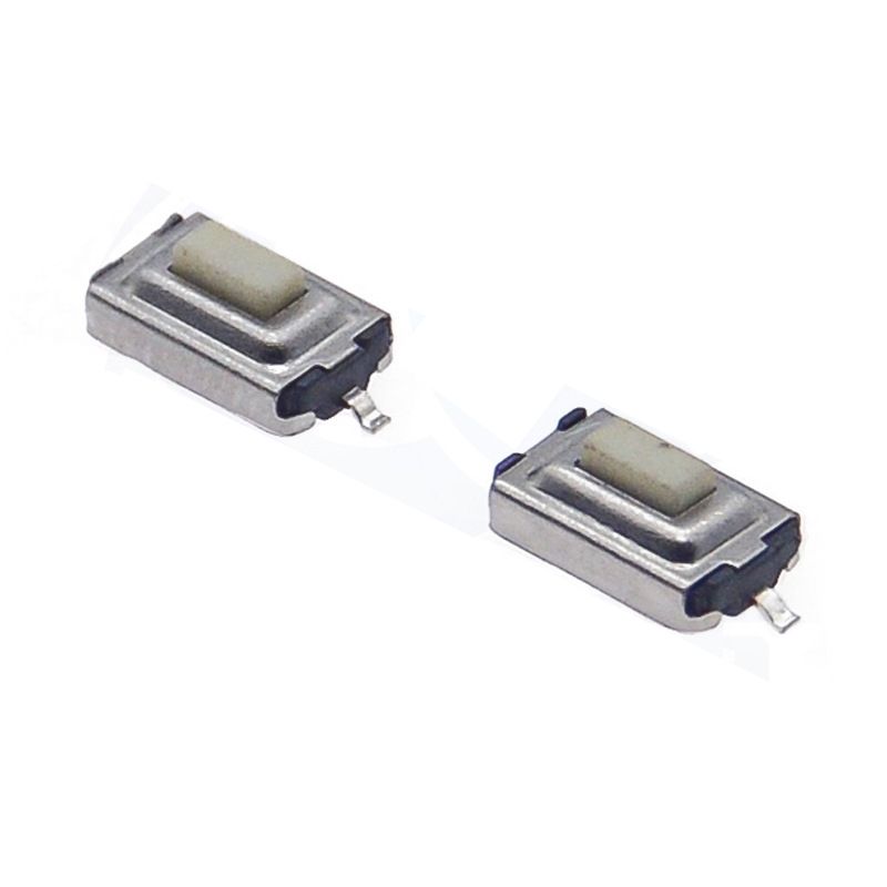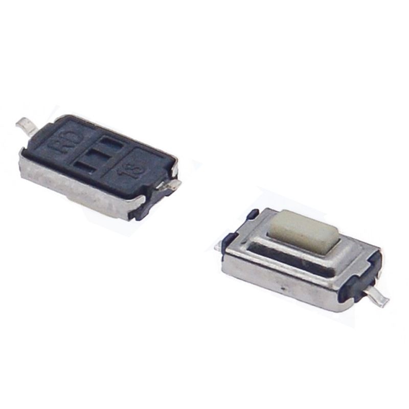 สวิตช์สัมผัส TC-110 SMT ขนาด 3x6x2.5 มม. แบบ 2 ขา [ตัวกระตุ้นแบบแบน/ยกสูง] ปุ่มสีขาว บรรจุแบบเทปและม้วน
