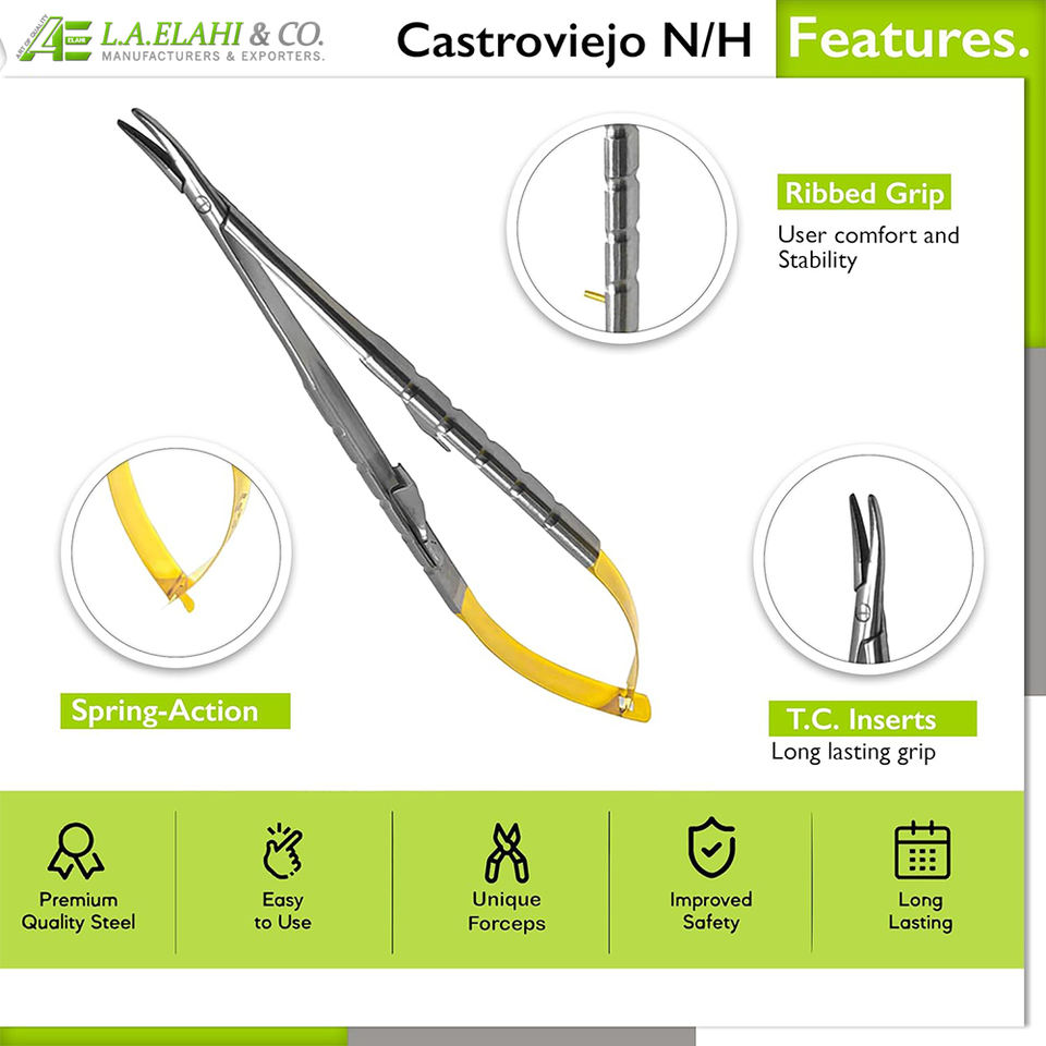 ทีซี คาสโตรวีโฮ ไมโครนีดเดิล ไมโครนีดเดิล ซูเจอร์ โฮลเดอร์ ไดร์เวอร์ สแตนเลสสตีล ผิวเงา ใช้ซ้ำได้ เกรด A+ อุปกรณ์ทังสเตน