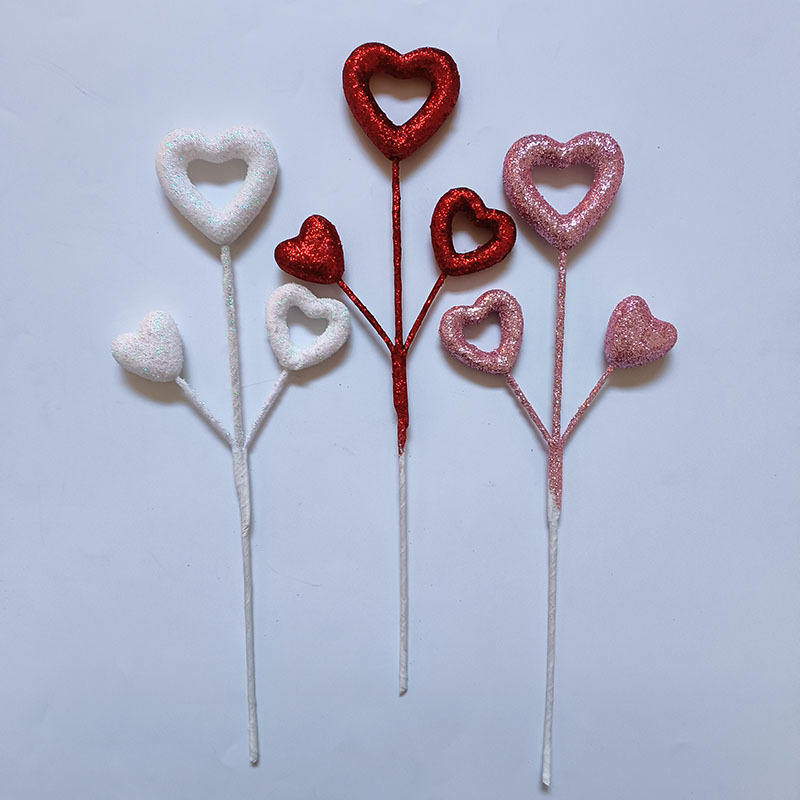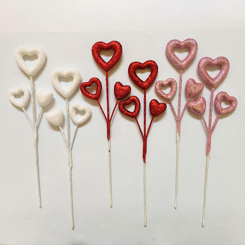 ของตกแต่งบ้านรูปหัวใจสำหรับวันวาเลนไทน์ แบบก้านกลวง วัสดุโฟมกลิตเตอร์ สำหรับตกแต่งงานปาร์ตี้