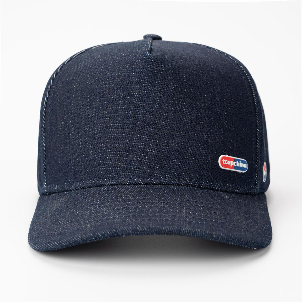 หมวกเบสบอล TCAP China Custom Denim 5 แผง ปีกโค้ง แต่งยางปะ พร้อมห่วงโลหะ