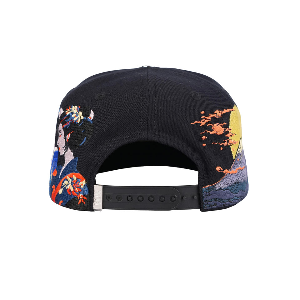 หมวกแก๊ปปักลายป้ายโลหะสีดำแบบสแนปแบ็ค TCAP China Custom Metal Button