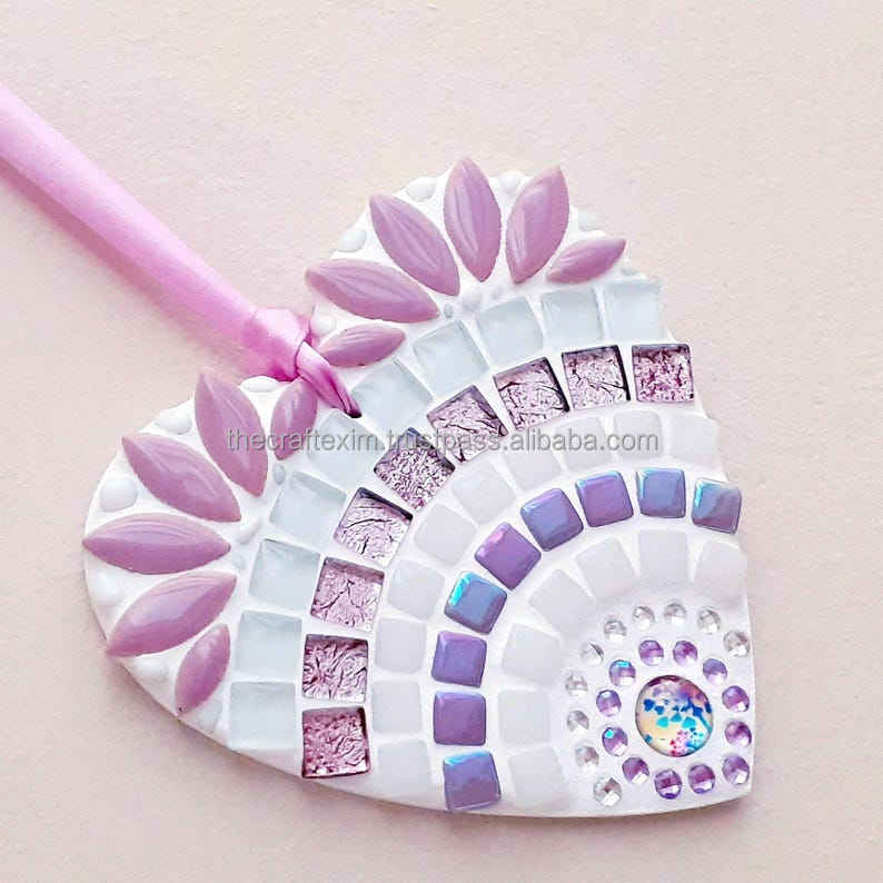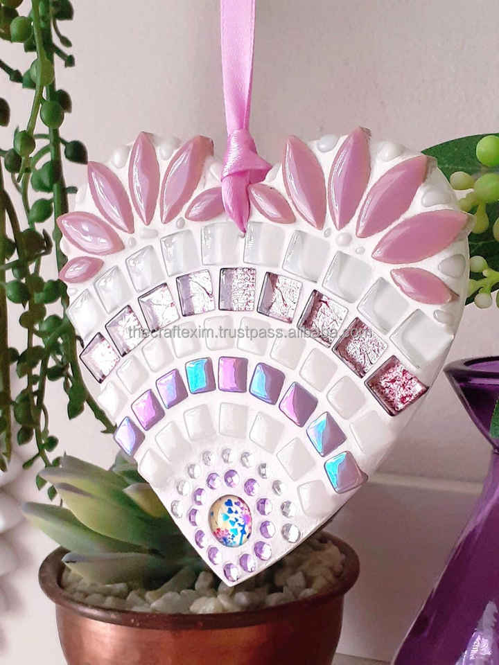 งานศิลปะกระจก TCE รูปหัวใจแบบอาร์ตเดโค ของตกแต่งแขวนผนัง ทำด้วยมืออเนกประสงค์ สำหรับวันขอบคุณพระเจ้า ETHEREAL BLUSH BLOSSOM