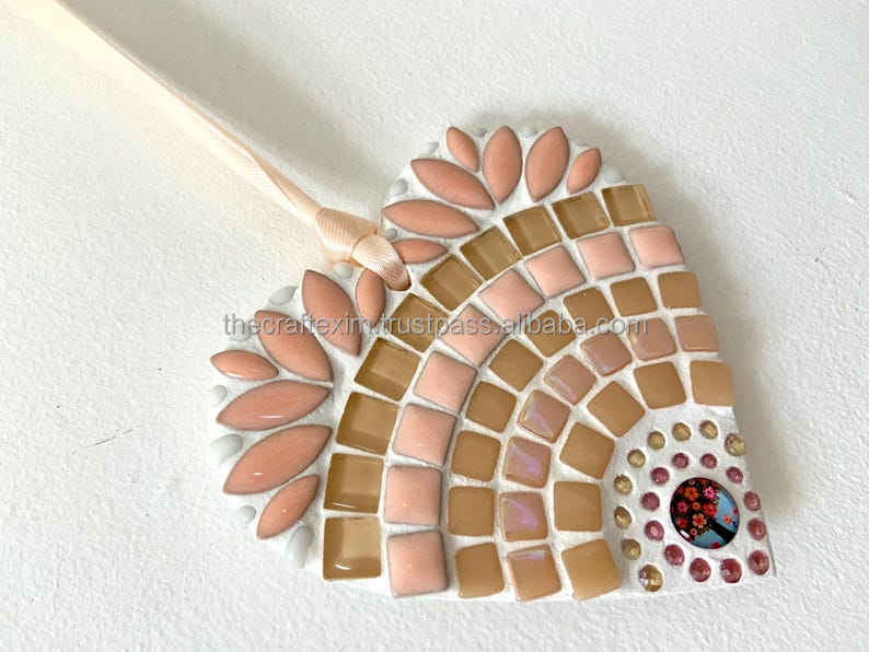 งานฝีมือแก้ว TCE ศิลปะตกแต่งรูปหัวใจแบบโมเสก ของตกแต่งแขวนผนัง ทำด้วยมือ รุ่น ETHEREAL BLUSH BLOSSOM
