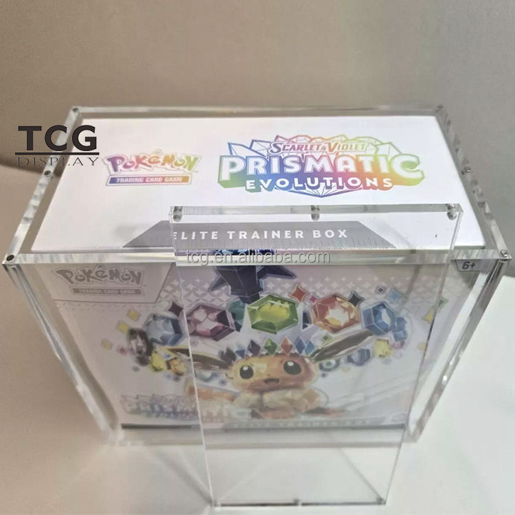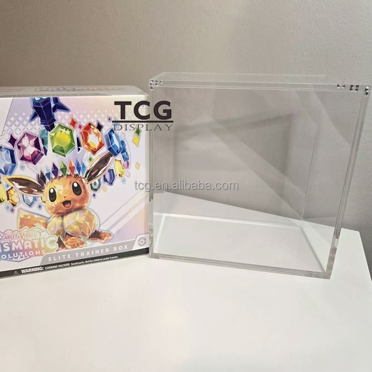TCG อะคริลิคใสโปเกมอนสีแดงเข้มการ์ดวิวัฒนาการปริซึมสีม่วงกล่องโค้ชยอดเยี่ยม ETB หนา6มมกล่องอะคริลิค