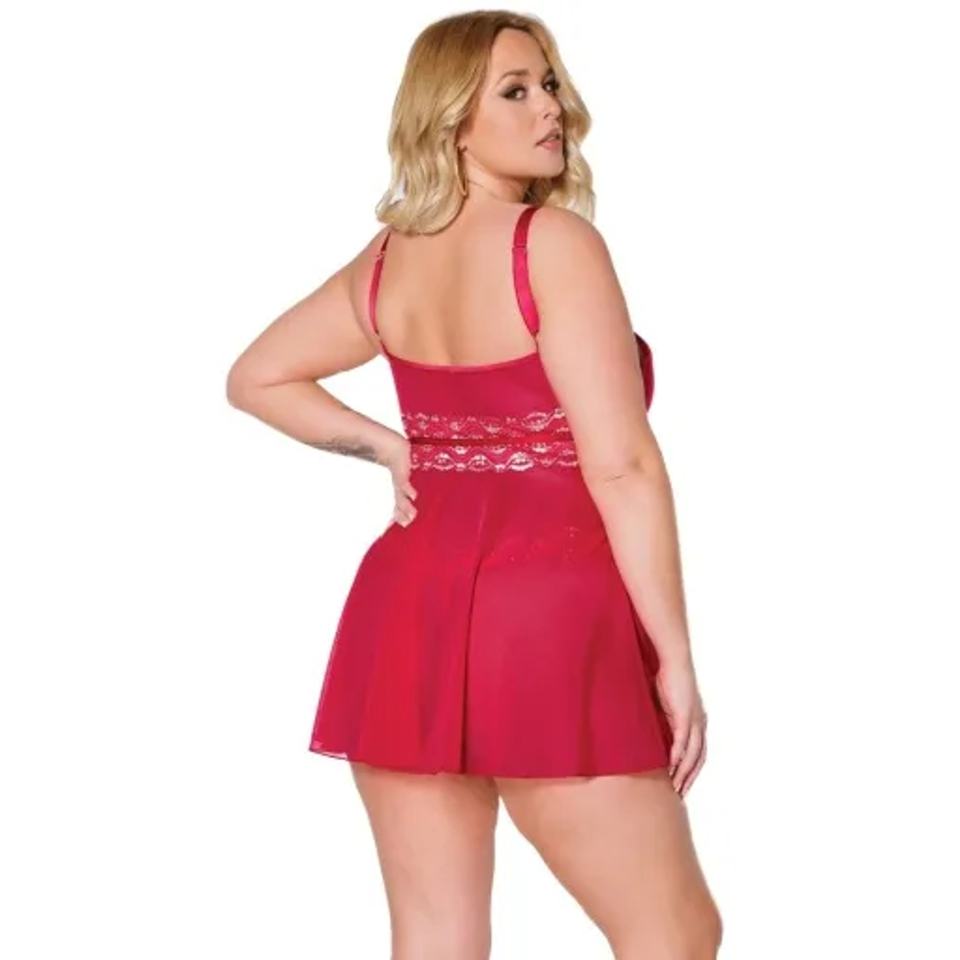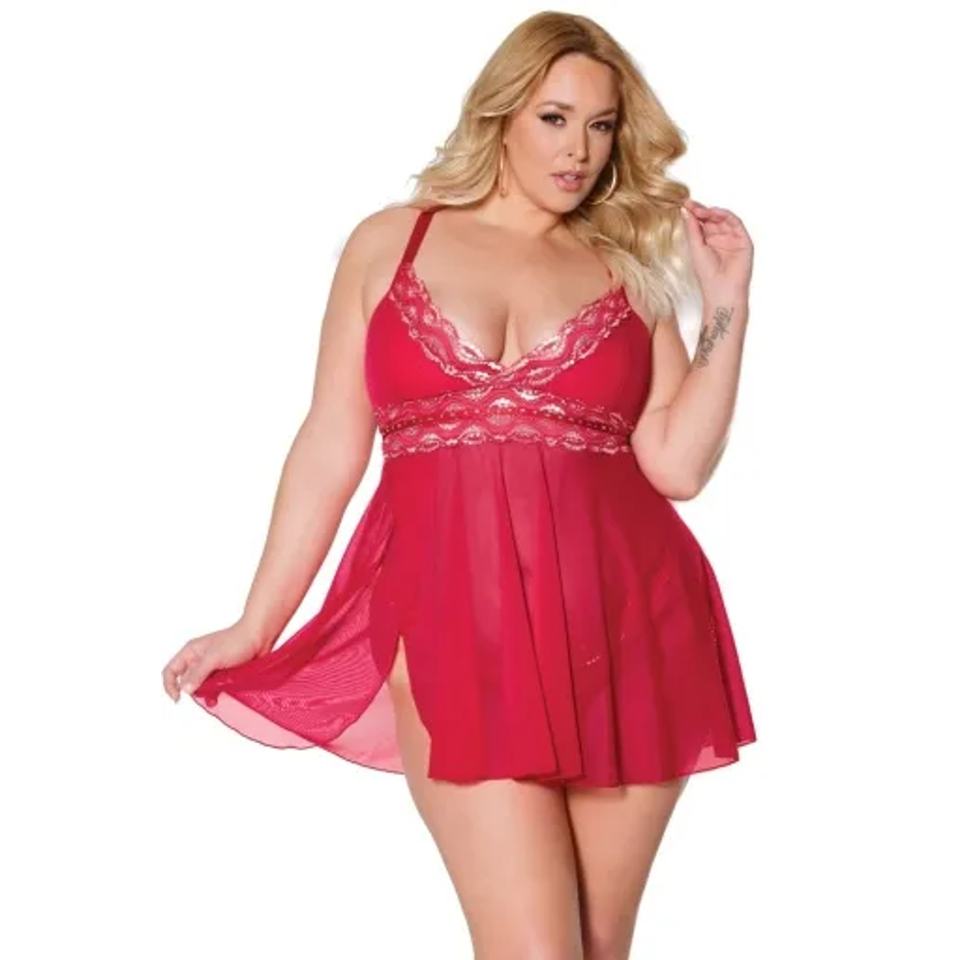 TD Coquette One Size Sexy Women's Lingerie Babydoll & Thong Featuring Embroidery Lace Rhinestone Decorations Naughty Bow Design