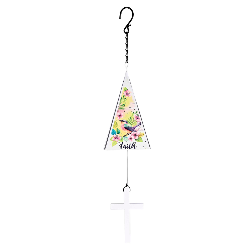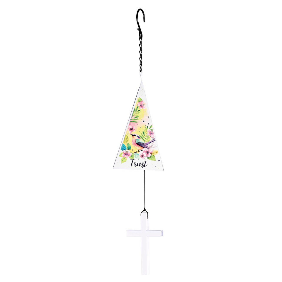 TD Handmade Iron Sail Windchime Garden Ornament with Bird Faith Hope Metal Features
