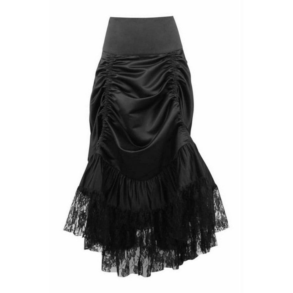 TD Women's Gothic Long Hi Low Bustle Skirt with Satin & Lace Comfortable and Stylish