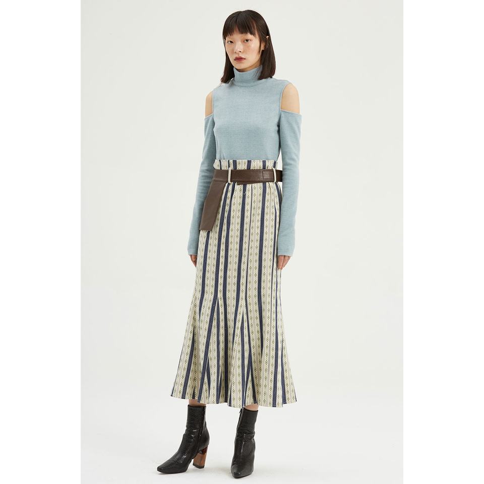 TD Women's Old-Fashioned Blue Jacquard Pleated Skirt