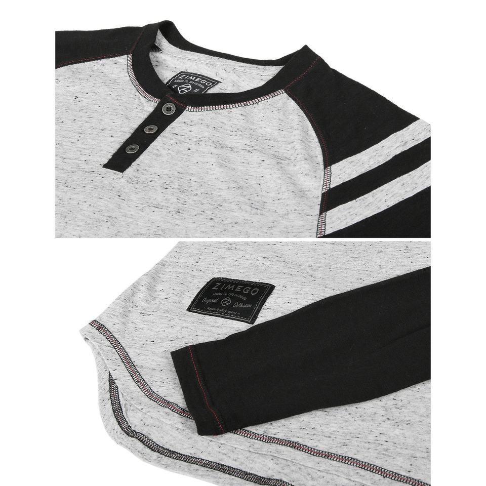 TD ZIMEGO Men's Athletic Raglan Henley Long Sleeve Striped Shirt with Arm Contrast