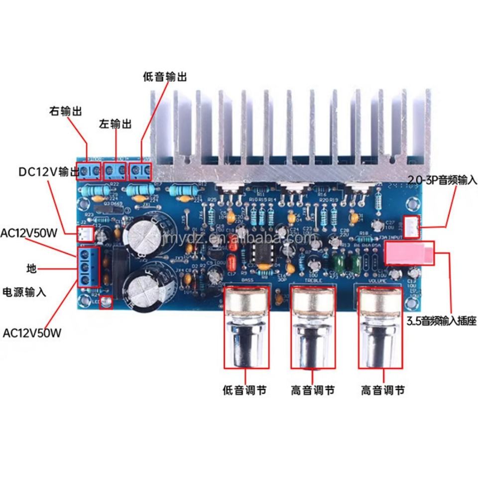 บอร์ดเพาเวอร์แอมป์ TDA2050+TDA2030A 2.1 แชนแนล 60W กำลังขับสูง สำหรับซับวูฟเฟอร์ พร้อมใช้งาน ป้องกันการรบกวน