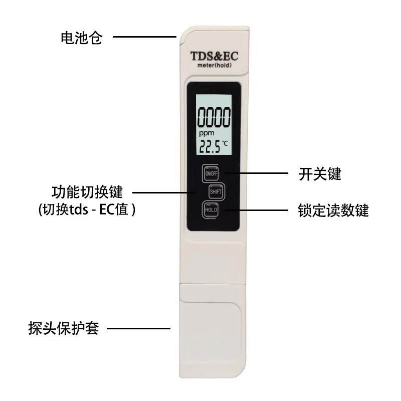 TDS EC ปากกาทดสอบคุณภาพน้ำจอแสดงผลดิจิตอลอเนกประสงค์สำหรับการทดสอบน้ำบริสุทธิ์
