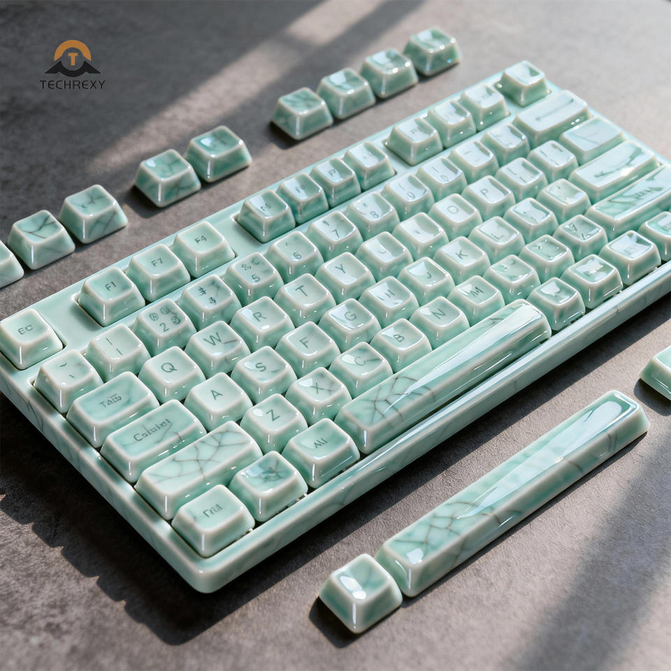 คีย์แคป TECHREXY113 OEM Contour 60/65/75/100% พิมพ์ลายด้านข้าง แบบกำหนดเอง ผลิตจากคริสตัลเซรามิก สำหรับคีย์บอร์ดแบบกลไก MX