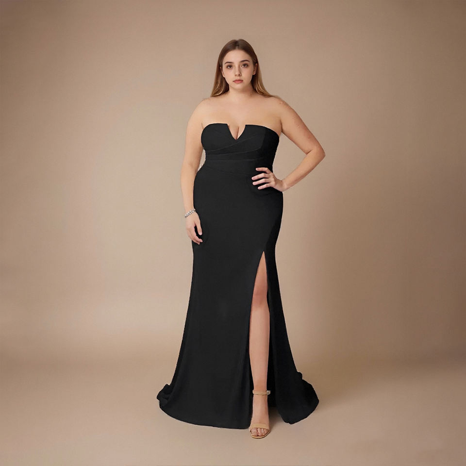 Teenyee ชุดเดรสสีดำสำหรับงานแต่งงานชุดแต่งงานทรงเมอร์เมดของแขก