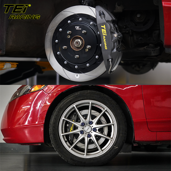 ชุดเบรกหน้า TEI Racing P40NS คาลิปเปอร์ 4 ลูกสูบ พร้อมจานเบรก 300*28 มม. ระบบเบรก BBK สำหรับ Honda Civic FD ล้อแม็กซ์ 16 นิ้ว