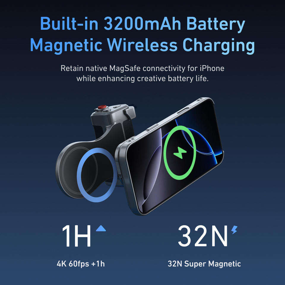 ชุดอุปกรณ์จับถือโทรศัพท์ TELESIN Master Grip สำหรับ iPhone 17 Pro/Max แบบแม่เหล็ก รักษาสิ่งแวดล้อม ใช้สำหรับเล่นเกมส์ พร้อมแบตเตอรี่ 3200mAh รองรับการชาร์จไร้สาย