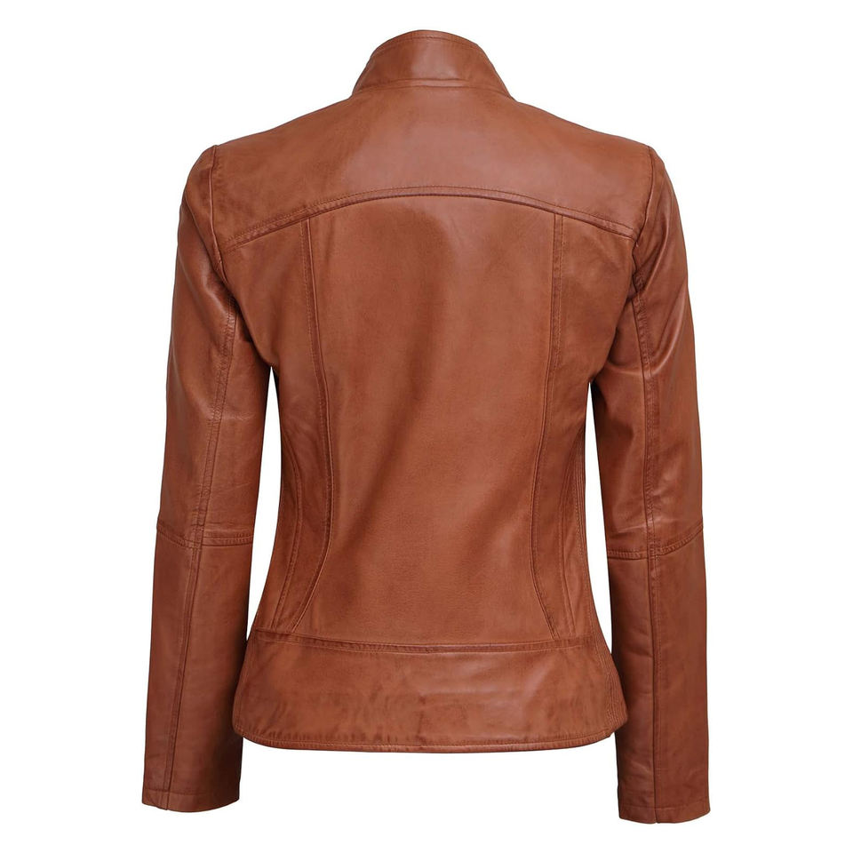 Tessutto แจ็กเก็ตหนังแท้สำหรับผู้หญิง, แจ็กเก็ตขี่มอเตอร์ไซค์เป็นมิตรกับสิ่งแวดล้อมและกันน้ำสไตล์วินเทจ