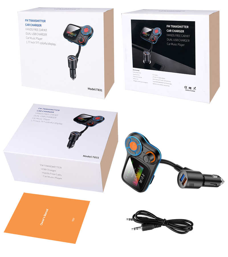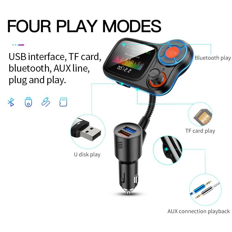 TF AUX เครื่องเล่นเพลง MP3 USB QC3.0,ที่ชาร์จแบบเร็วหน้าจอ LCD ชุดคิตสำหรับรถยนต์บลูทูธเครื่องส่งสัญญาณวิทยุ FM แฮนด์ฟรี