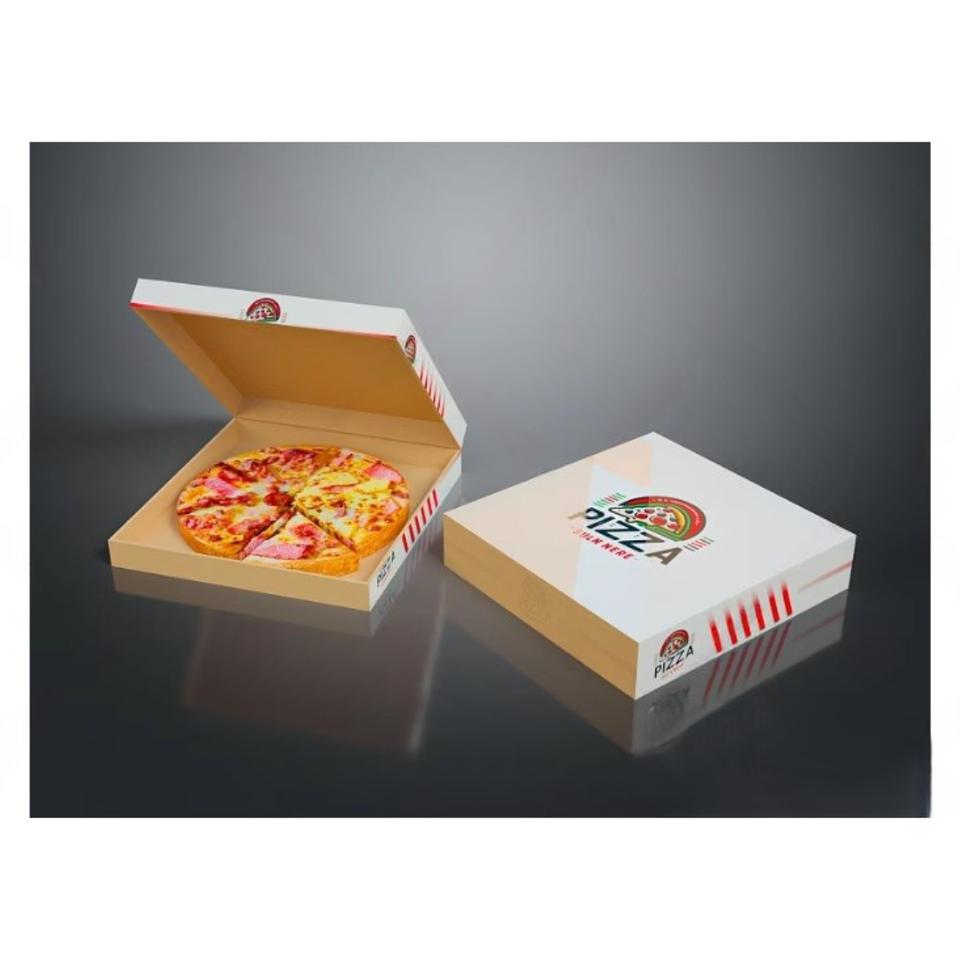 กล่องบรรจุภัณฑ์พิซซ่ากระดาษแข็งหนา CBB-0173พร้อมพิมพ์โลโก้ตามสั่งเหมาะสำหรับการส่งอาหารร้อนและบริการซื้อกลับบ้าน