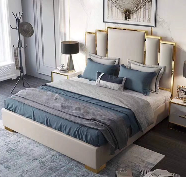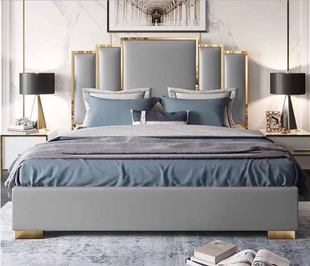 TH-H8200ห้องนอนหรูหราทันสมัยเตียงหนังพร้อมหัวเตียงสูง