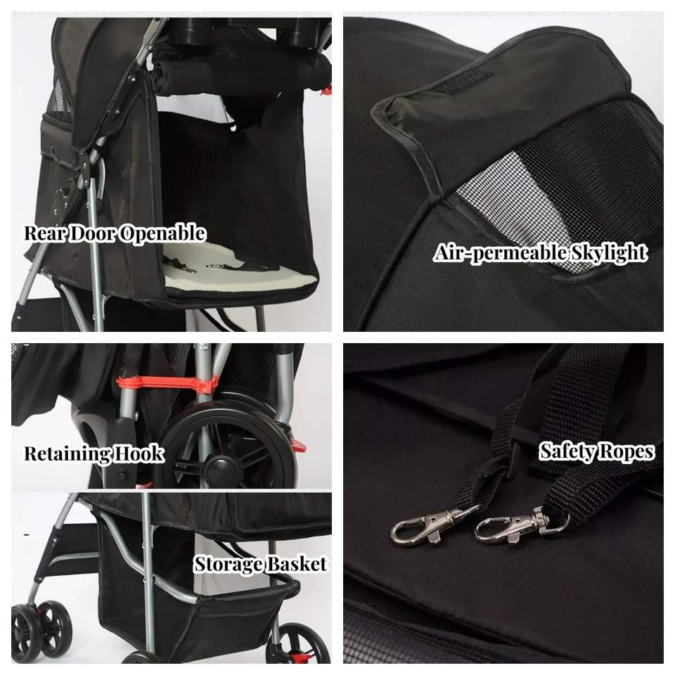 รถเข็นสำหรับสุนัขเดินทางพร้อมเทคโนโลยีแบบพับได้แบน TH-PPS-299แผงระบายอากาศได้และล้อที่ล็อคได้สำหรับกลางแจ้ง