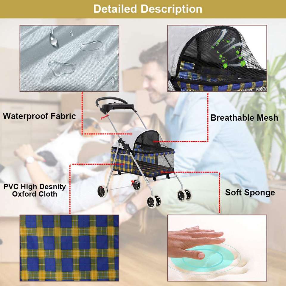 รถเข็นสัตว์เลี้ยงพับได้สี่ล้อแบบพรีเมี่ยมพร้อมยางกันลื่นและหน้าต่างดูขนาดใหญ่เพื่อความสะดวกสบายของ TH-PPS-312