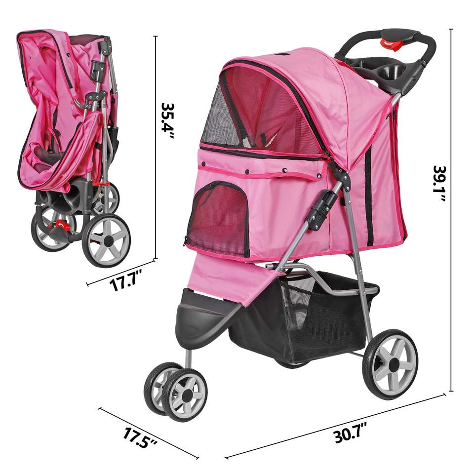 รถเข็นสำหรับสัตว์เลี้ยงแบบสามลูกแบบพกพา TH-PPS-494พร้อมที่ครอบป้องกันฝนและระบบพับได้อย่างรวดเร็ว