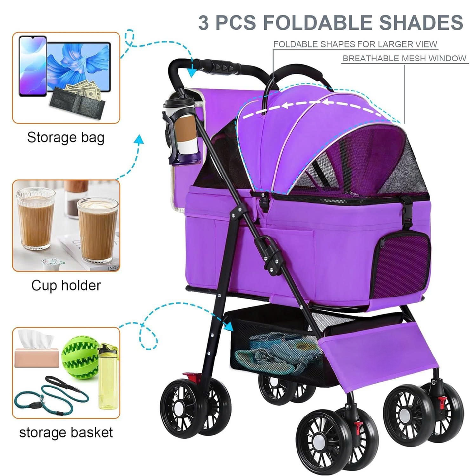 รถเข็นสัตว์เลี้ยง TH-PPS-638 รุ่นพรีเมียม 4 ล้อ พับเก็บได้ด้วยระบบสัมผัสเดียว โครงสร้างสแตนเลส และล้อสำหรับทุกสภาพพื้นผิว