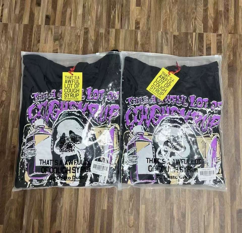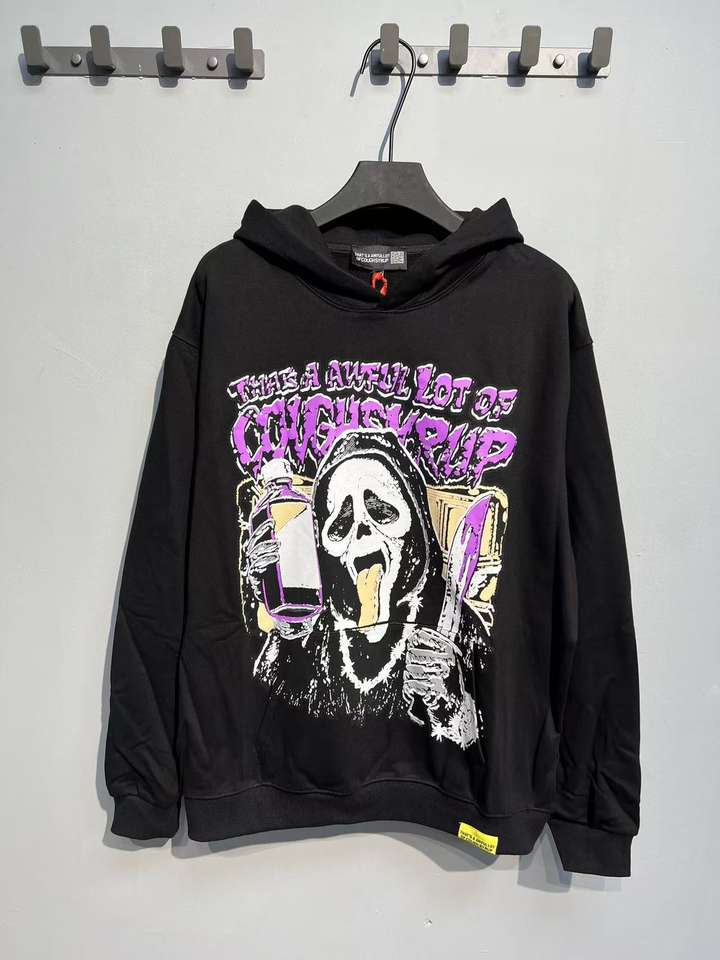 นั่นเป็นน้ำเชื่อมยี่ห้อ couph syrup ที่มีฮู้ดแบบหลวมแนวสตรีทผ้าฝ้าย100%