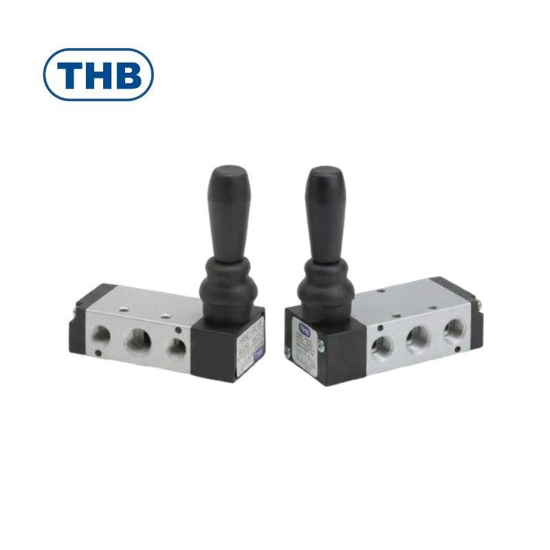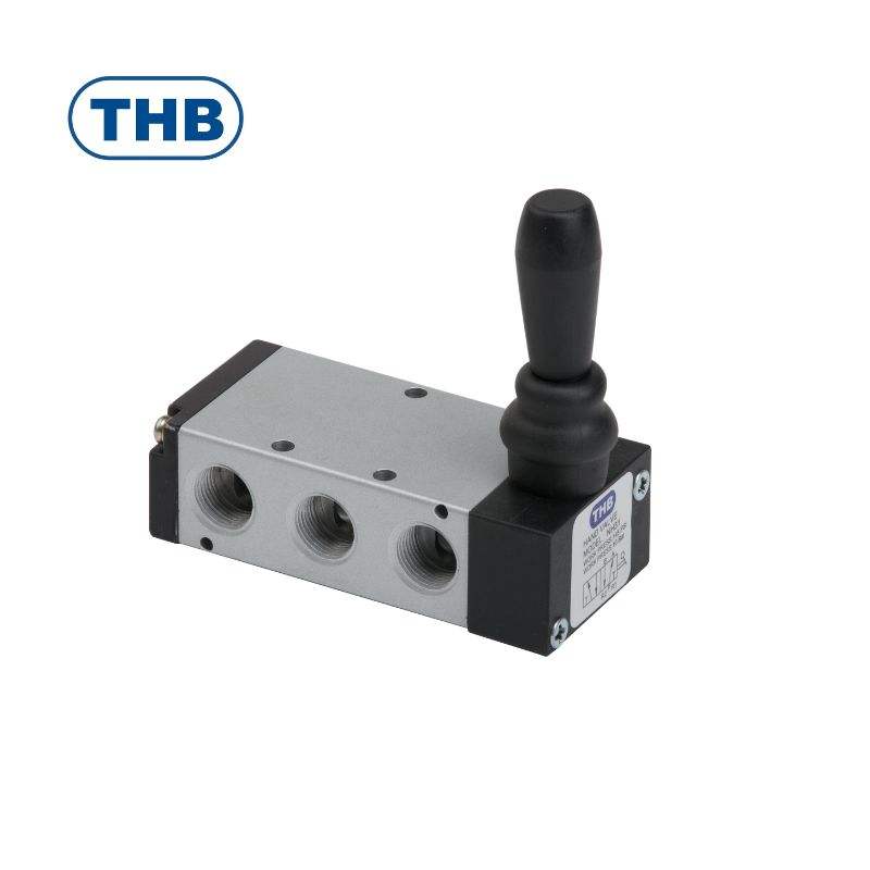 วาล์วควบคุมลมแบบกลไกอัตโนมัติ THB สีน้ำเงิน ทำจากอลูมิเนียมอัลลอยด์ 5/2 ทาง ขนาดพอร์ต 1/4 นิ้ว อะไหล่ระบบนิวเมติก