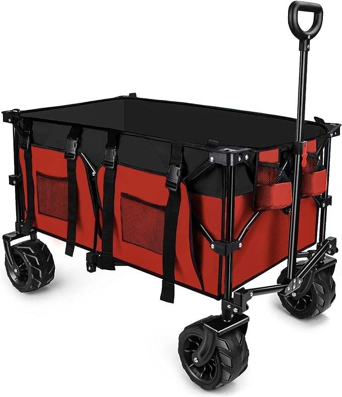 THCW10106 - รถเข็นเกวียนยูทิลิตี้แบบพับได้แบบพกพาสําหรับงานหนักเกวียนความจุขนาดใหญ่แบบพับได้พร้อมล้อทุกพื้นที่สีแดง