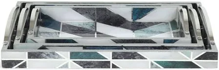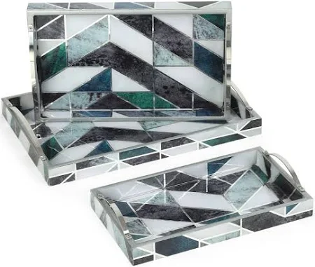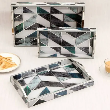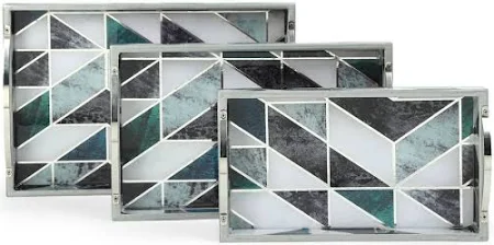 บ้าน Co. ถาดเสิร์ฟไม้สี่เหลี่ยมผืนผ้าพิมพ์ลายเรขาคณิตสีเขียวและสีขาว3-Pcs