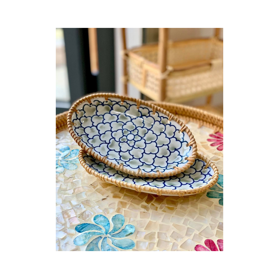 ตัวเลือกที่เหมาะสำหรับห้องครัวของเราจำนวนมากหวายมือทอถาดเสิร์ฟกับแม่ของมุกจากเวียดนาม