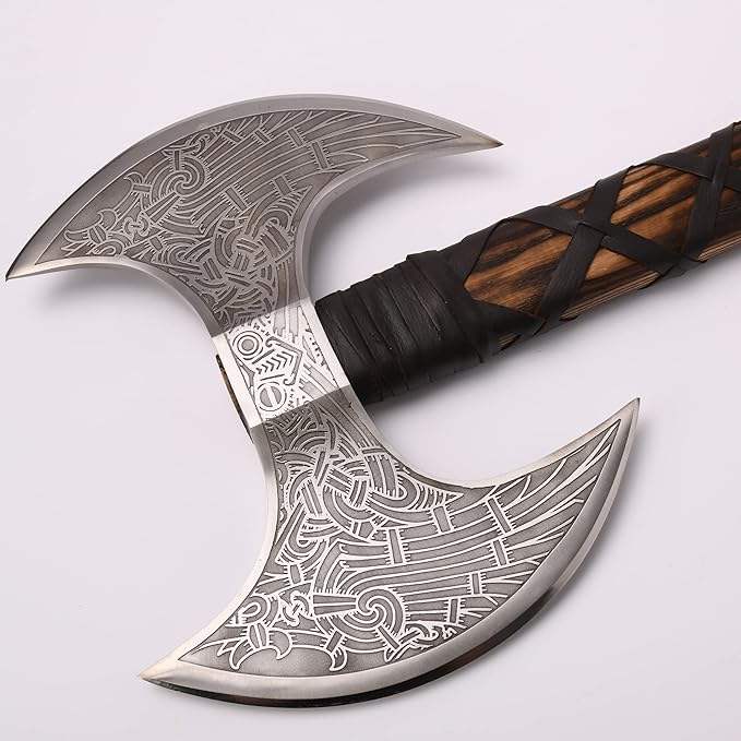 ขวานไวกิ้งทำมือจาก THEWIZCRAFTS หัวขวานเหล็กกล้าคาร์บอนสูง ด้ามไม้โรสวูด ขนาด 18 นิ้ว สำหรับตั้งแคมป์